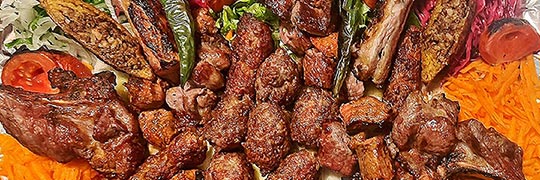 Char-grilled skewers of spicy hand-minced lamb alternated with chunks of eggplantSac Kavurma